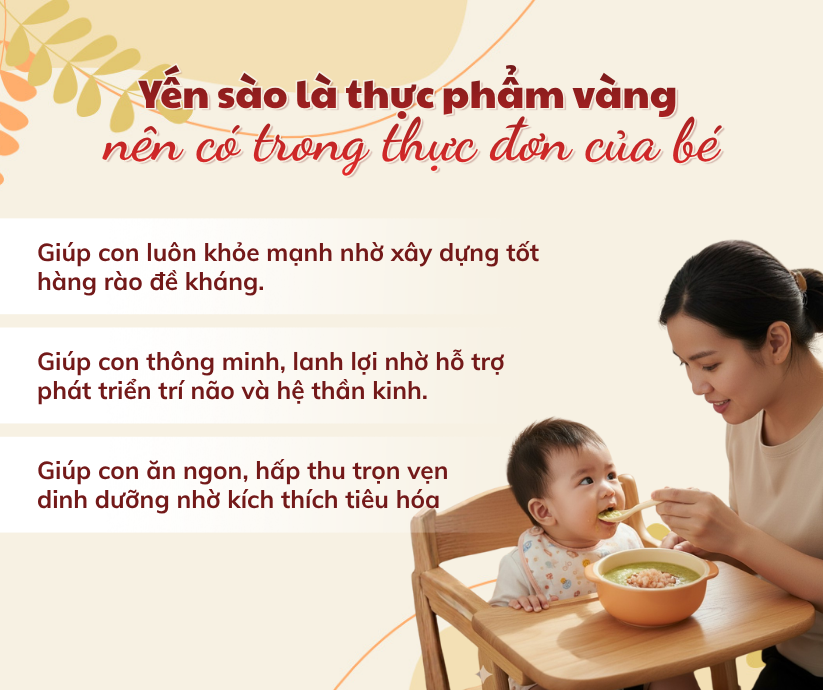 Với ba công thức cháo dinh dưỡng yến sào cho bé Ghiền Food vừa chia sẻ, mẹ đã có thêm lựa chọn đa dạng cho thực đơn của con yêu. Tuy nhiên, để hiểu rõ vì sao yến sào được mệnh danh là “thực phẩm vàng”, mẹ hãy cùng Ghiền Food khám phá những lợi ích tuyệt vời mà yến sào mang lại cho sự phát triển toàn diện của bé ngay sau đây!
