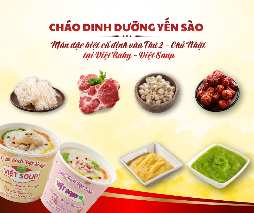 Nếu mẹ đang tìm một bữa ăn chính vừa đủ chất, vừa tiện lợi cho những ngày bận rộn, thì cháo dinh dưỡng yến sào cho bé tại Việt Soup và Việt Baby chính là lựa chọn lý tưởng.