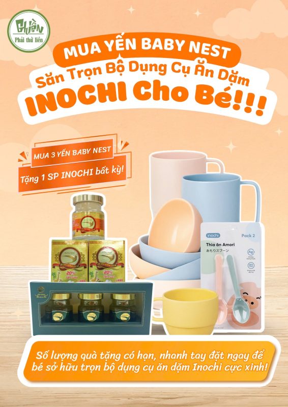 • Mua 3 hũ yến – nhận ngay 1 món Inochi cho bé. Bé vui – mẹ khỏe – nhà hạnh phúc!